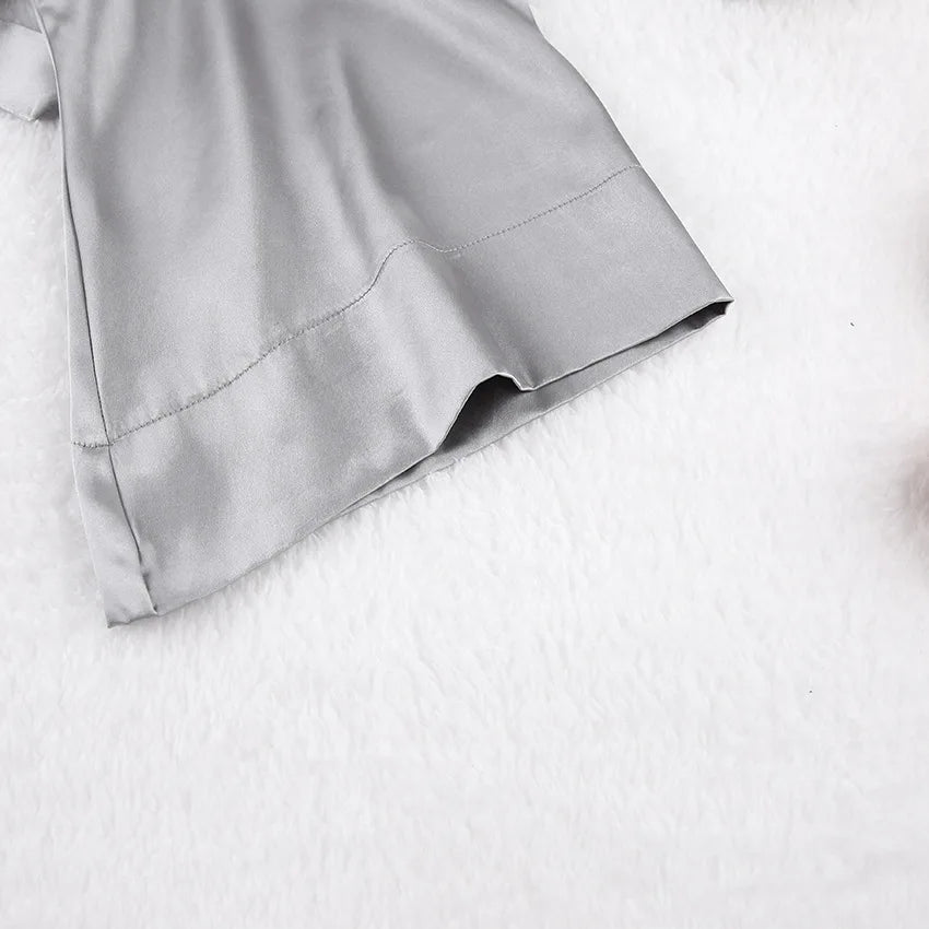 Erleben Sie feminine Anmut und stilvolle Leichtigkeit mit diesem kurzen Kimono-Dressing. Die breiten Ärmel und der verstellbare Gürtel umschmeicheln die Silhouette und verleihen Ihnen ein Gefühl von Selbstbewusstsein und Komfort. Ideal für entspannte Momente, bringt dieser Kimono sowohl Raffinesse als auch Gemütlichkeit in Ihren Alltag.