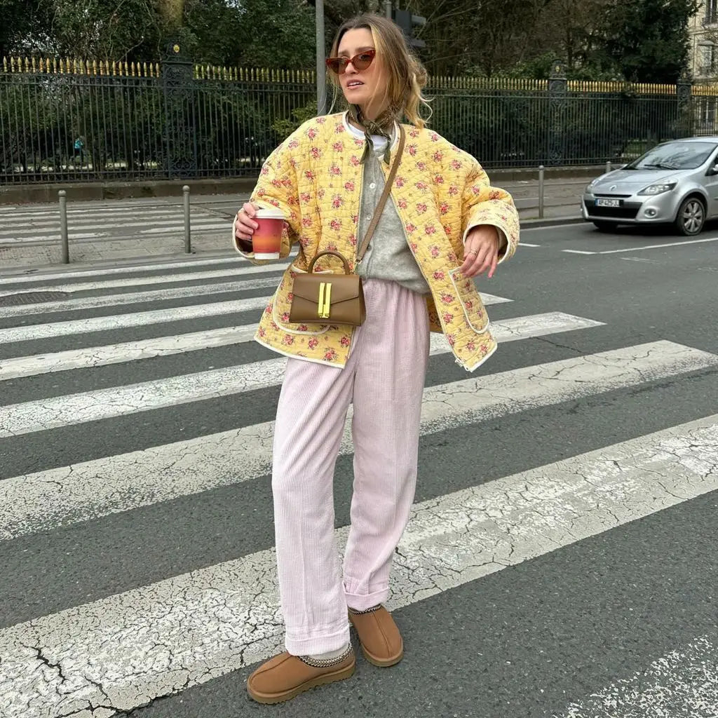 Bewältige kalte Tage mit Leichtigkeit in diesem leichten gepolsterten Layer, der alltägliche Funktionalität mit einem unverwechselbaren Stil kombiniert. Die oversized Silhouette bietet eine entspannte Eleganz, während die großen Taschen praktische Nützlichkeit mit modernem Charme vereinen. Hergestellt aus einem weichen und gemütlichen Stoff, hält sie dich warm, ohne zusätzliches Volumen hinzuzufügen. Ob du zu einem Brunch gehst oder shoppen gehst, diese Jacke vervollständigt deinen Look mit einem Hauch von natürlicher Eleganz.