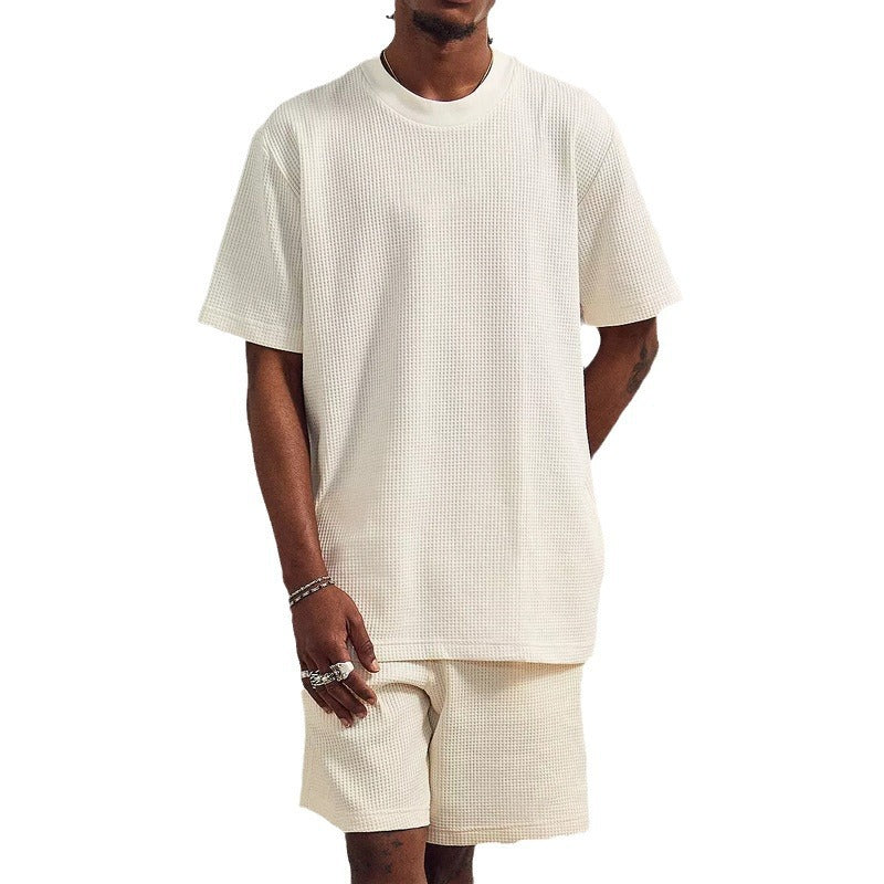 Entdecken Sie das perfekte Freizeitset für den modernen Mann: Dieses lässige Outfit kombiniert einen komfortablen Kurzarmpullover mit passender Shorts aus atmungsaktivem Strukturstoff. Ideal für warmes Wetter und entspannte Tage, bietet es sowohl Stil als auch Funktionalität.