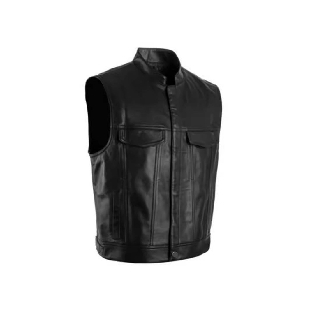 Herren modische Lederweste mit aufgesetzten Taschen Aliams