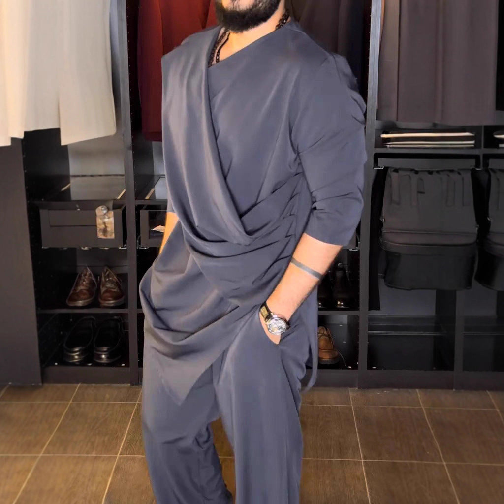 Herren stylische Wickelbluse mit Drapierungsdetails Aliams