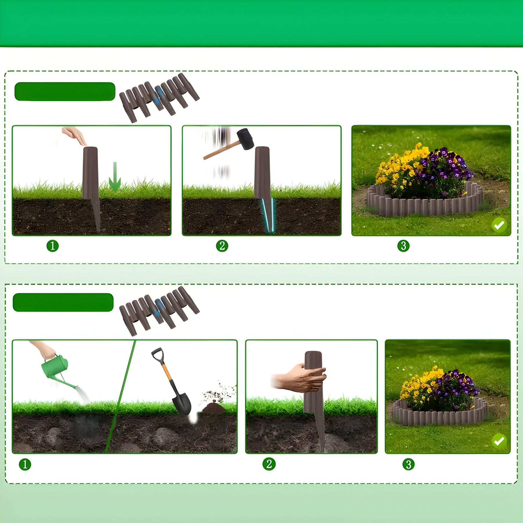 Die einzelnen Elemente werden einfach in den Boden gesteckt – kein Graben oder Spezialwerkzeug erforderlich. So sparen Sie Zeit und Aufwand bei der Gartengestaltung. -