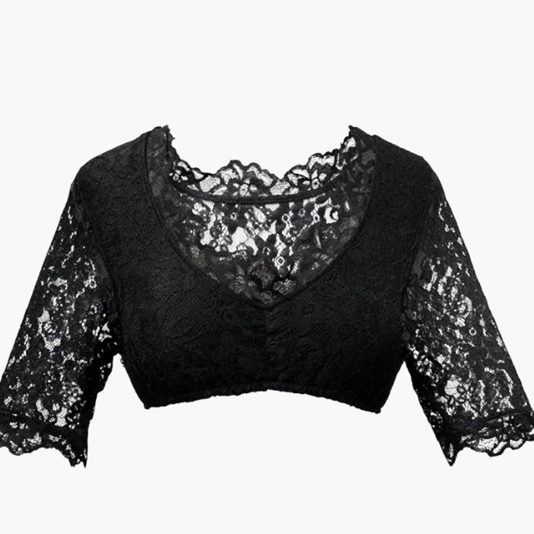 Diese Spitzenbesatz Dirndlbluse für Damen ist ein traditionell inspiriertes Kleidungsstück mit modernen Akzenten. Sie zeichnet sich durch eine körpernahe Passform, feine Spitzenabschlüsse und kurze Ärmel im Trachtenstil aus. Entwickelt für festliche Anlässe, lässt sie sich ideal mit verschiedenen Dirndln kombinieren und verleiht jedem Outfit eine elegante Note.