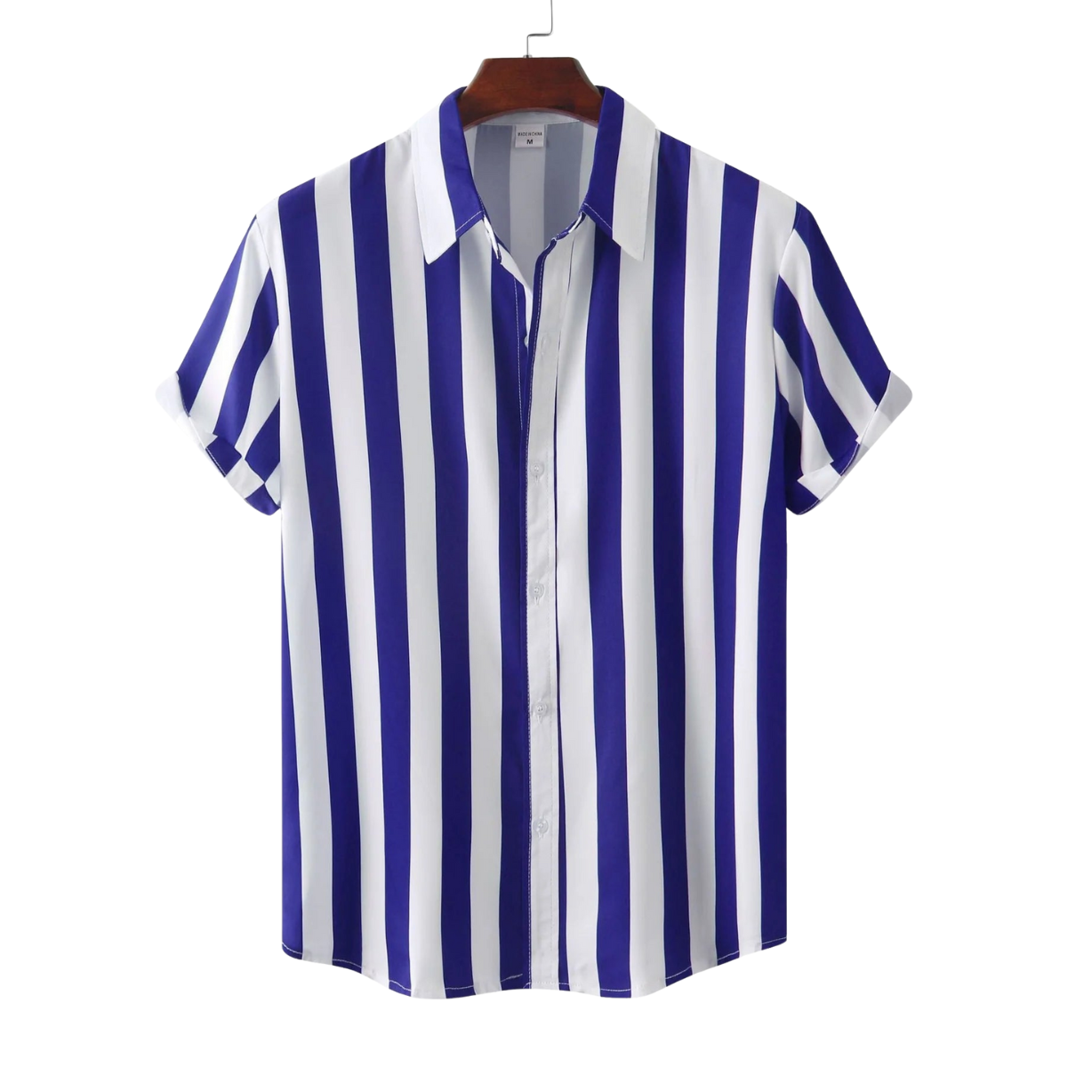 - Vertikales Streifenmuster: Ein auffälliges Design, das dem Hemd eine markante Optik verleiht.
