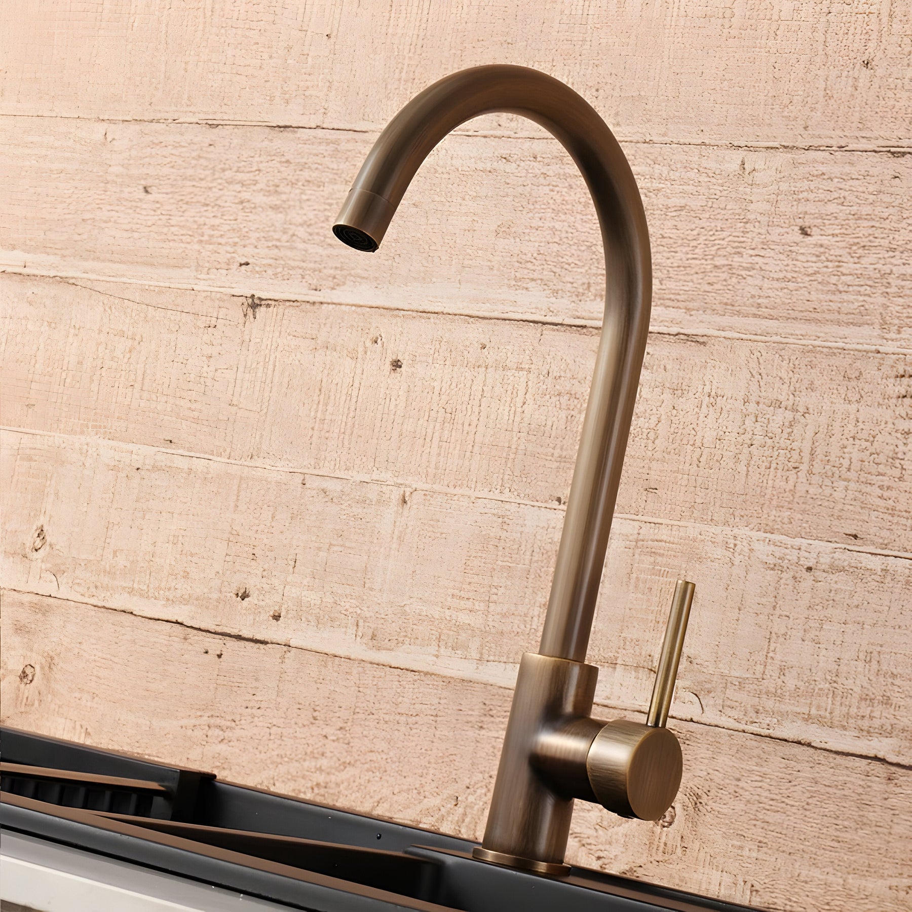Ein stilvoller Wasserhahn kann das gesamte Erscheinungsbild Ihrer Küche verändern – und genau das tut der TapWise Wasserhahn. Mit seinem zeitlosen Design aus massivem Messing, dem eleganten Antik-Bronze-Finish und der einfachen Einhebelbedienung bringt er nicht nur Funktionalität, sondern auch Charakter in Ihre Küche. Perfekt für alle, die Komfort, Langlebigkeit und ein edles Design in einem suchen.