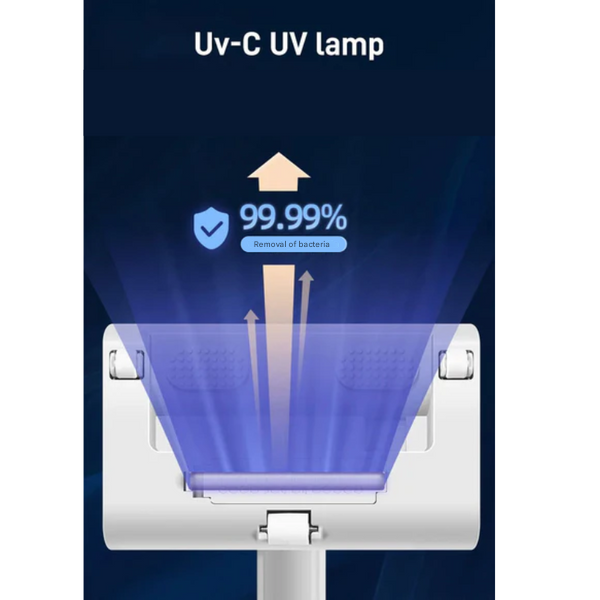 - UV-C Technologie: U-förmiges violettes Licht mit einer Wellenlänge von 260nm tötet bis zu 99,7% der Bakterien und Milben ab