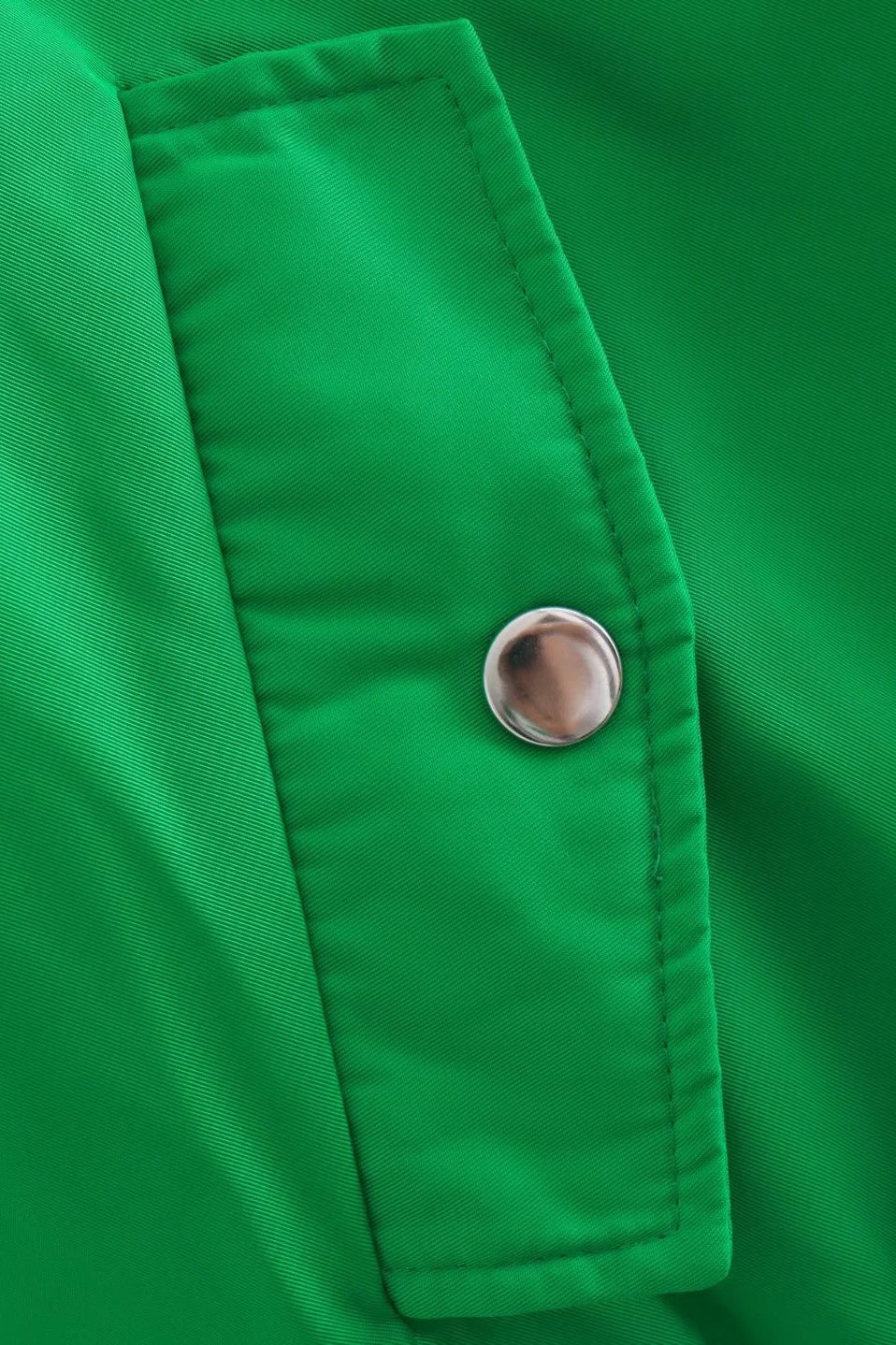 Modernes Design: Der grüne Farbton und die charakteristischen Bomberjacken-Details setzen einen coolen Akzent.