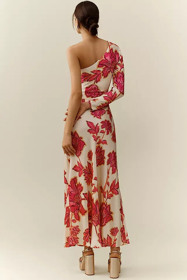 Valentina - Langes geblümtes Kleid mit einer Schulter